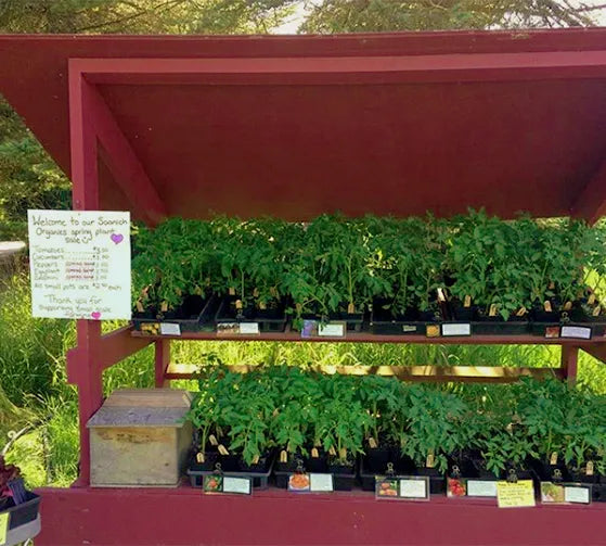 The Three Oaks farm stand specializes in veggie starts, available May – June.